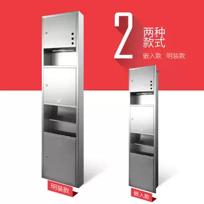 Stainless steel two-in-one embedded wall type sanitary carton dressing room wall-mounted sanitary carton tissue rack