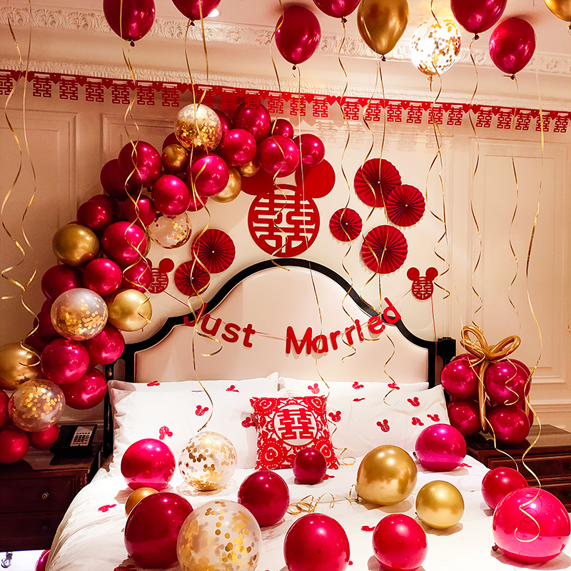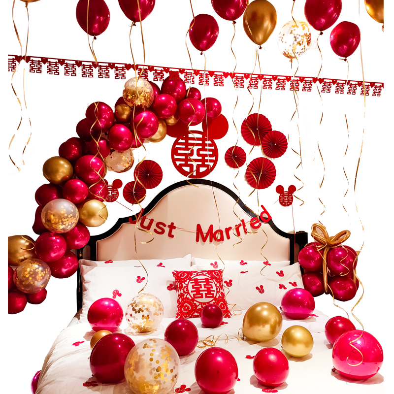 Netred wedding room arranged creative balloon chain package proposalsWhite romantic new room bedroom wedding decoration items