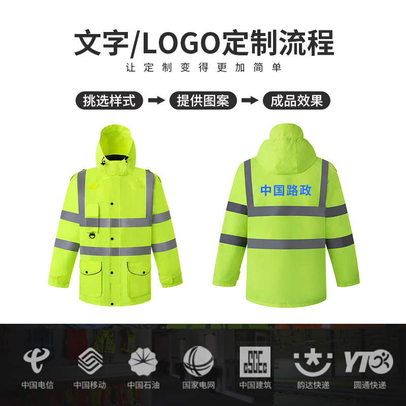 Thickened and cotton detachable reflective raincoat safety coat on duty cold protection suit adult two-piece traffic cotton