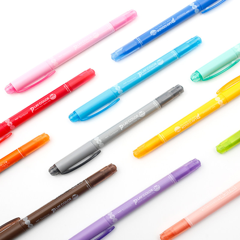 Not stuffy recommended Japan TOMBOW dragonfly round point pen double head watercolor fluorescent pen creative color 12 color suit PLAY COLOR DOT
