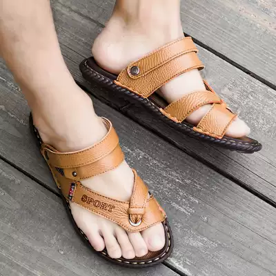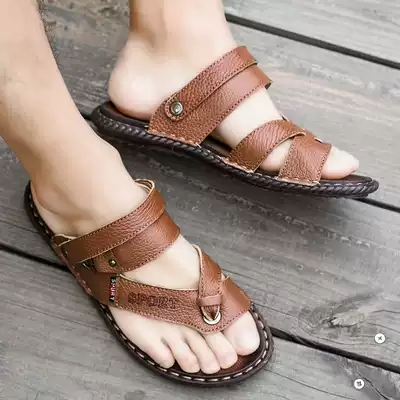 Sandals men's 2021 new summer driving herringbone personality fashion leather sandals dual-use trend soft bottom