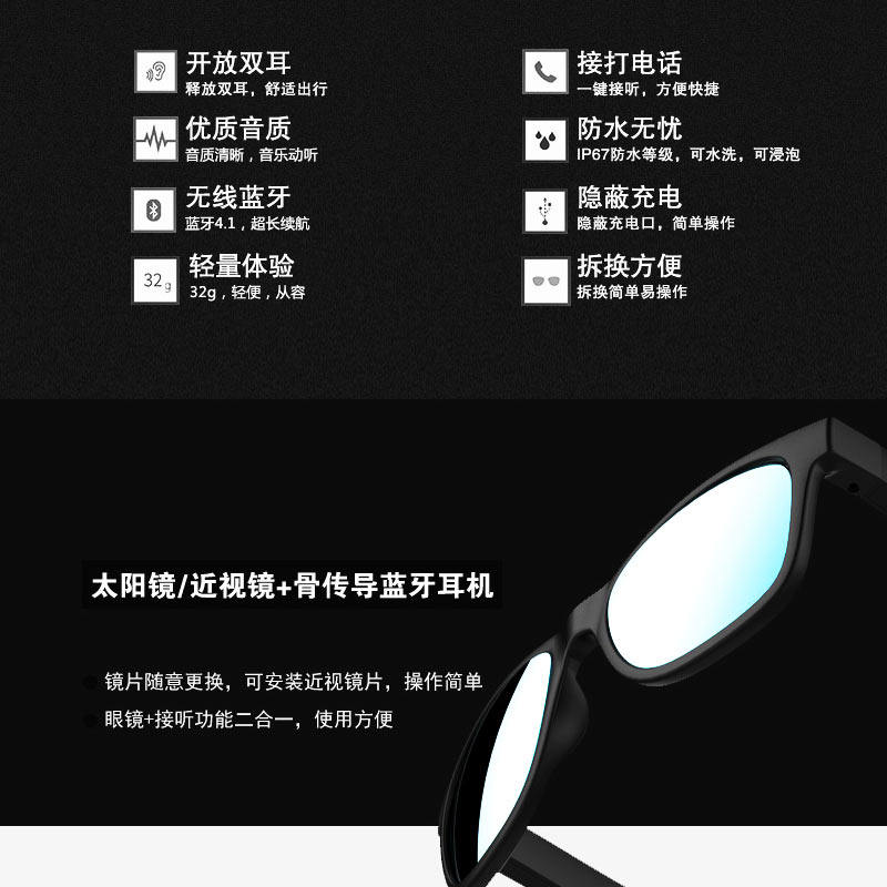 Bone Conduction Bluetooth Glasses Headphones Intelligent Call Multifunction integrated Near-lens Waterproof Blue Light Polarized Sunglasses Wireless Motion Zungle Apply Huawei Xiaomi Bone Sensing Multifunction