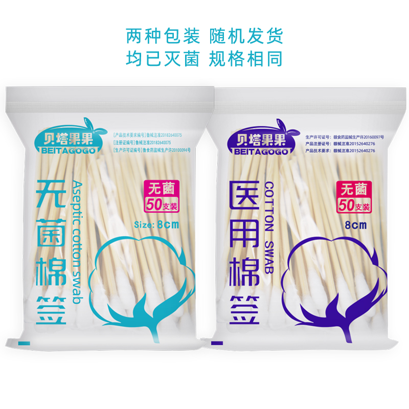 Cotton swab Cotton swab Medical disposable wooden stick Medicinal sterile disinfection Gynecological baby ear household cotton swab