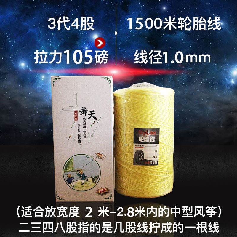 The 3rd generation 4-strand 1500m tire cord is suitable for kites with a width of 2-2.8 meters