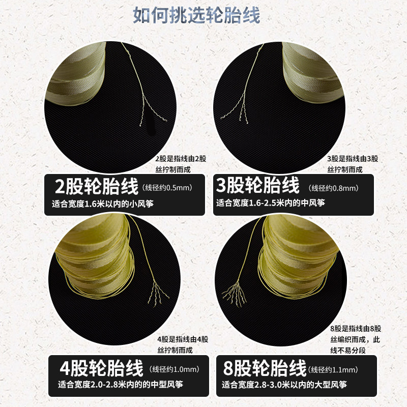 The 3rd generation 4-strand 400m tire cord is suitable for kites with a width of 2-2.8 meters