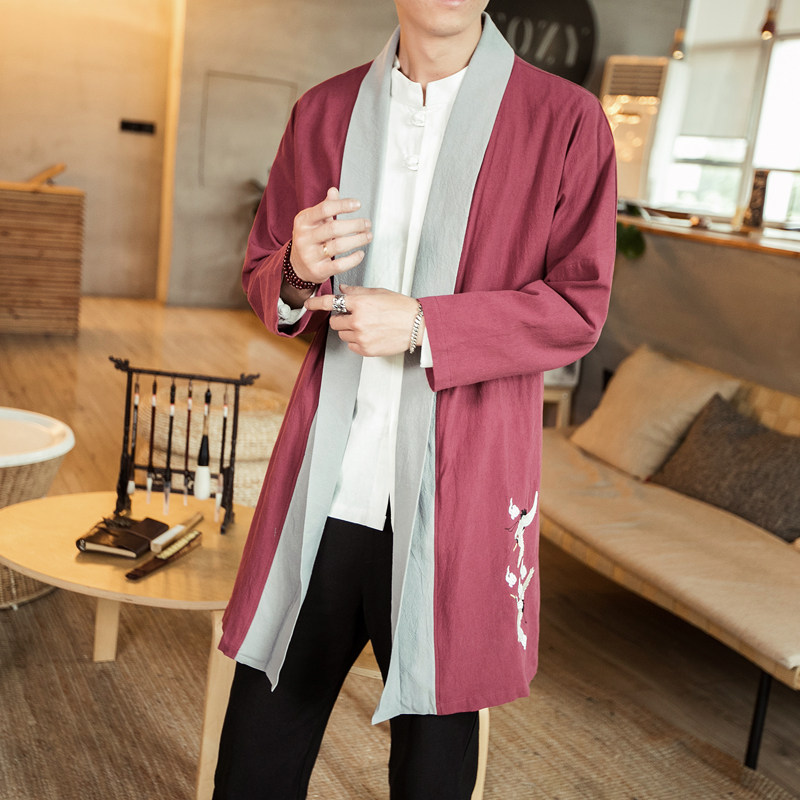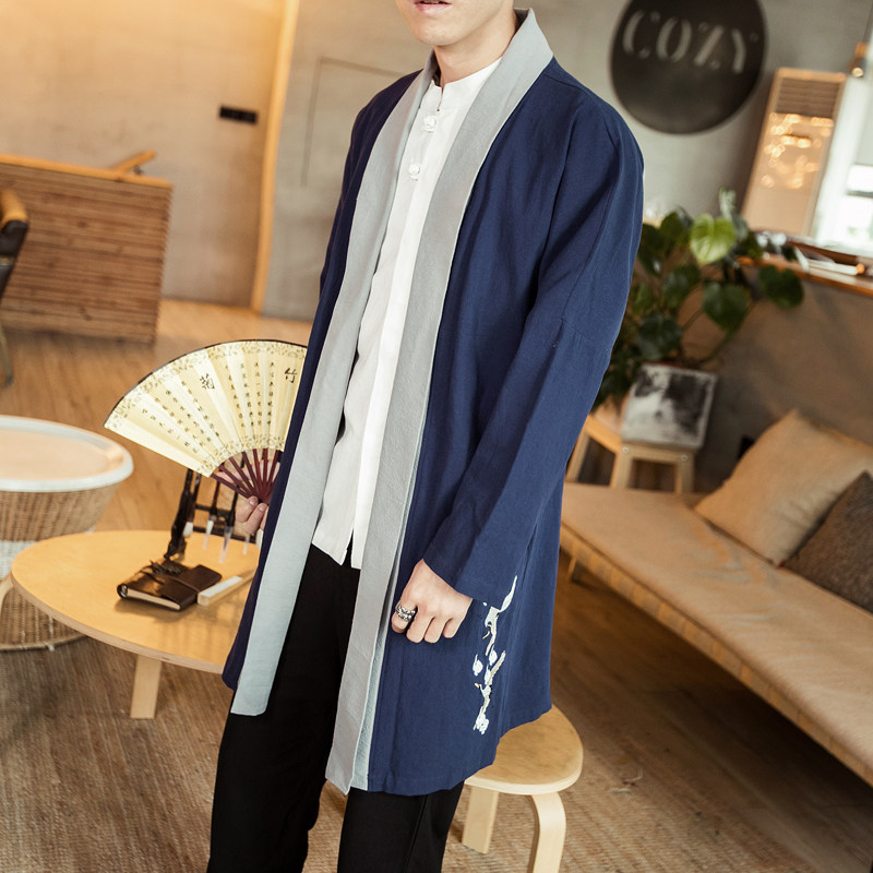 Hanfu open-shirt male Tang suit Chinese wind linen men's style ancient windy jacket acting out of the Beatles The big coat of clothing