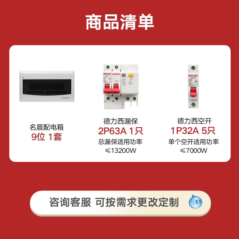 9-position distribution box Complete set of household surface-mounted strong electric box with Delixi 2P leakage protection 1P air open circuit breaker switch box