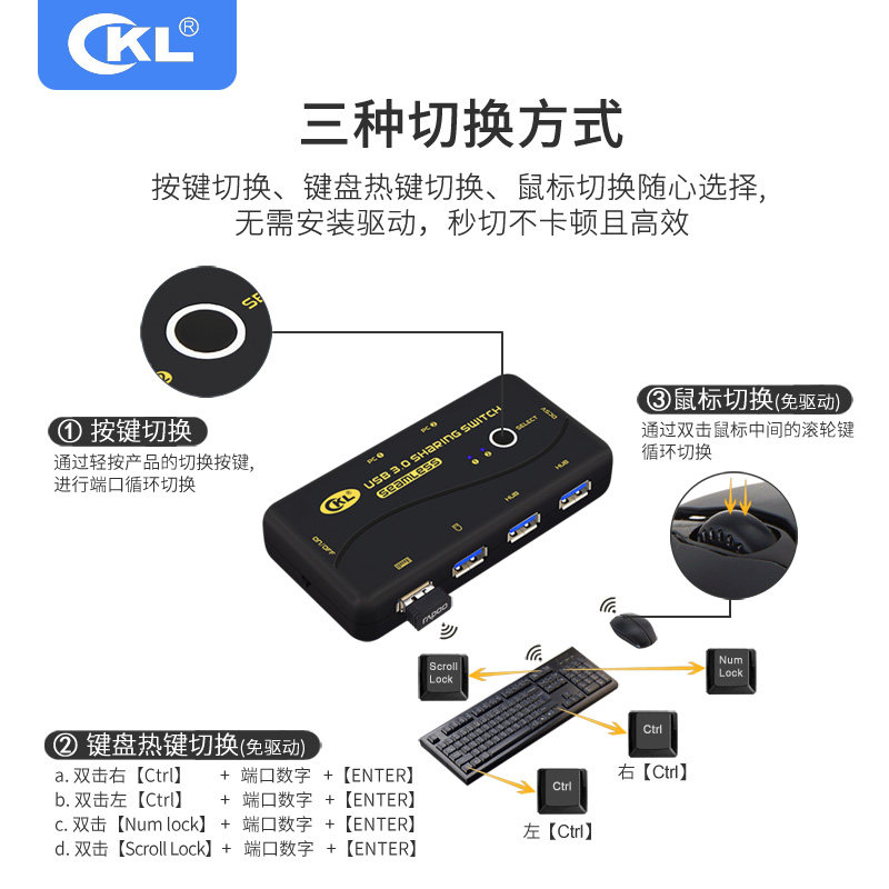 CKL USB3 0 Printer Sharer 4 ports 2 computers Share mouse and keyboard 2 in and 4 out switchers