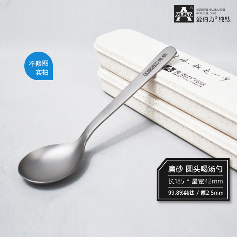 pure titanium scoop (pure titanium frosted process) pure titanium for soup spoons (pure titanium frosted process) pure titanium for a soup spoon (pure titanium frosted process) pure titanium for a soup spoon (pure titanium polished process) pure titanium adult with spoon (pure