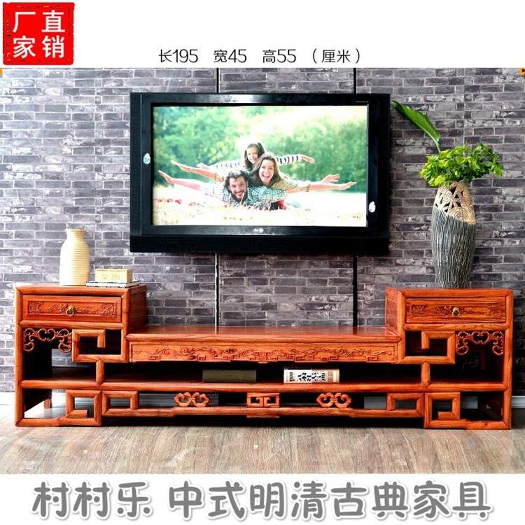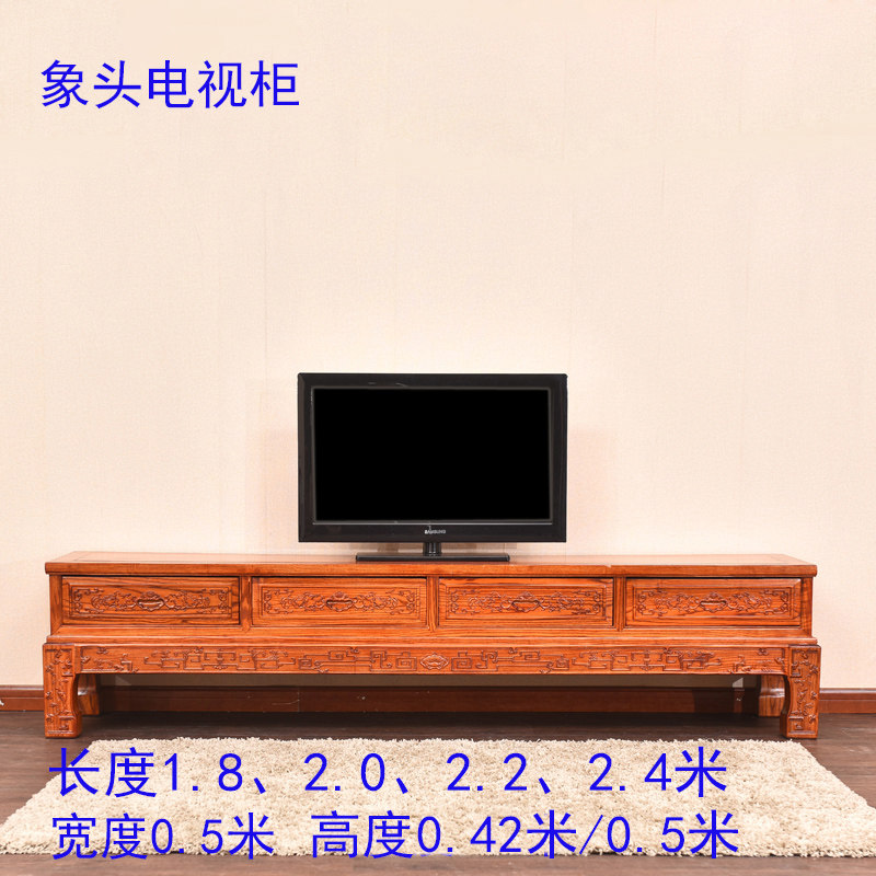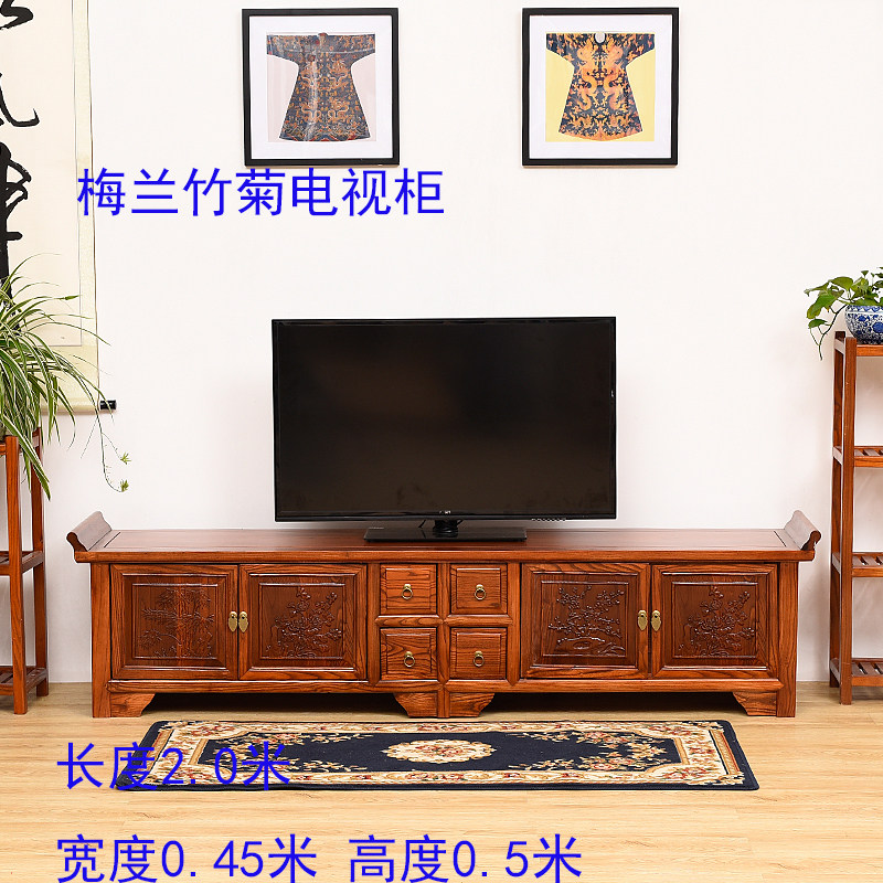 Solid wood TV cabinet red yellow pear color new Chinese style elm wood carving luxury household 2 meters long cabinet