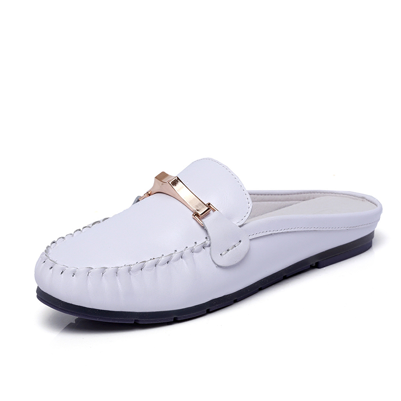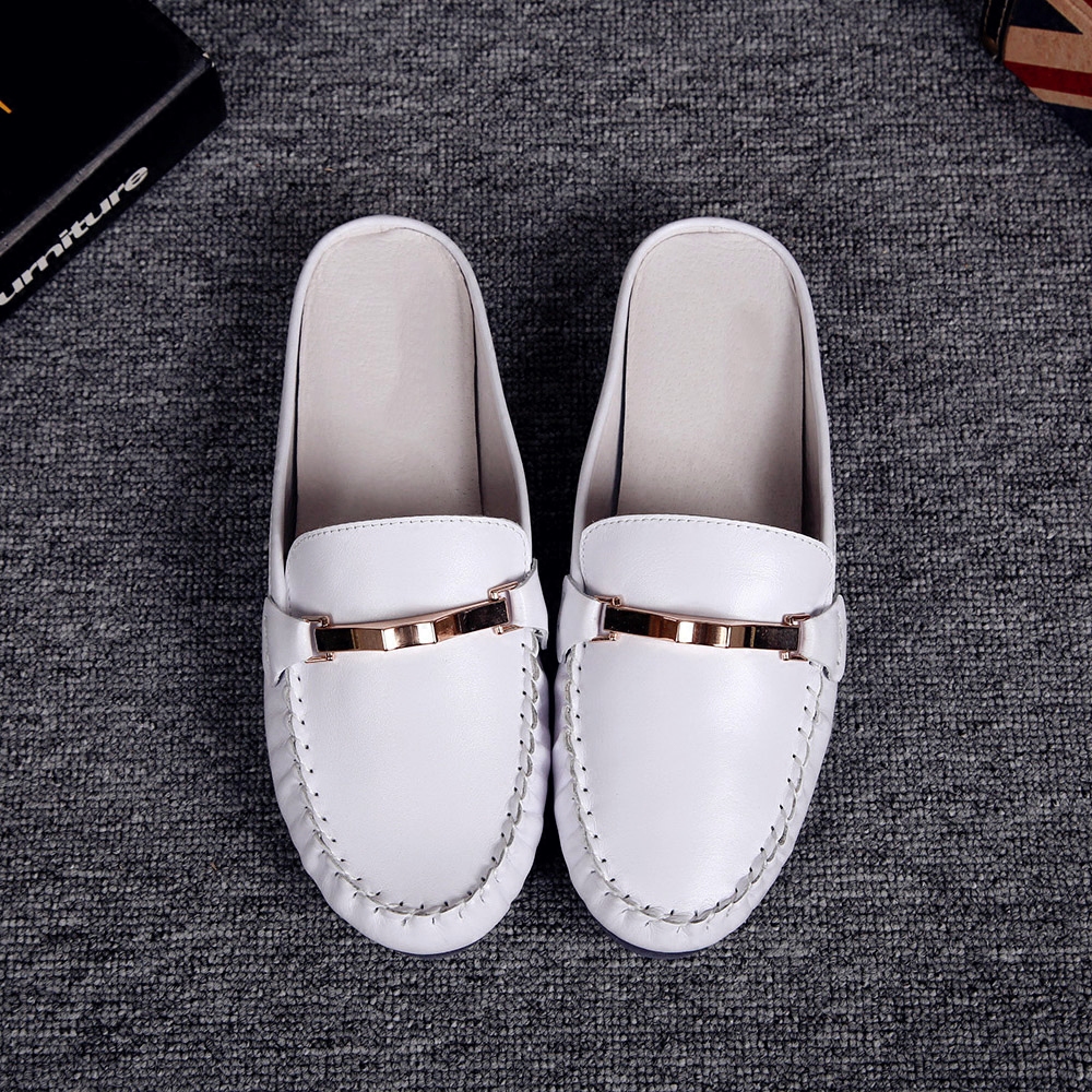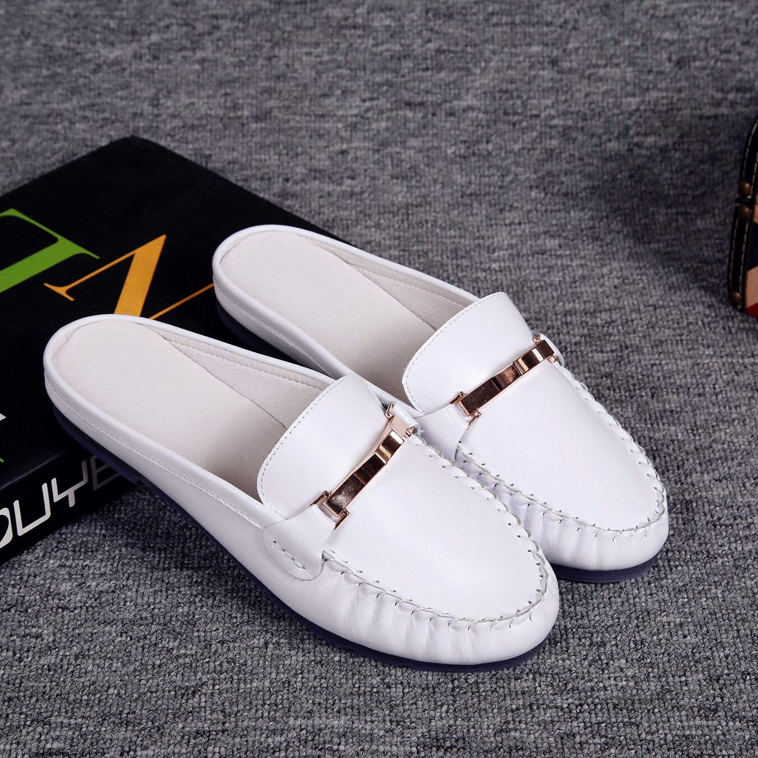 Europe station 2022 summer new women's shoes slippers outside the semi - slippers metal buckle - leather fur shoes