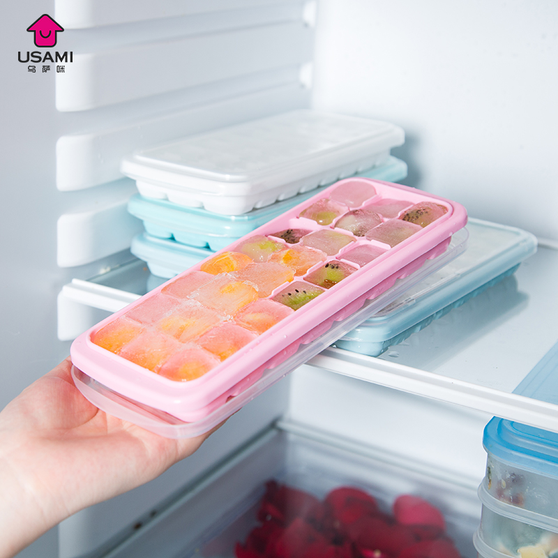 Japanese silicone ice sheet household ice mold baby auxiliary box creative ice sheet with lid frozen box