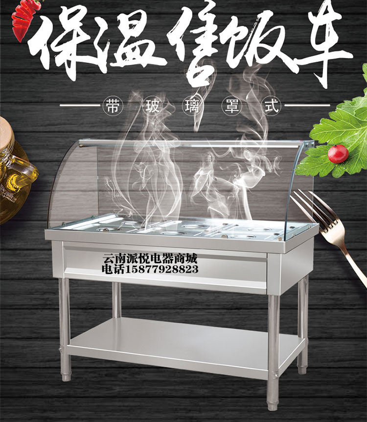 Stainless steel commercial electric heating luxury with glass cover insulation fast food truck soup pool sales cooking table insulation sales table