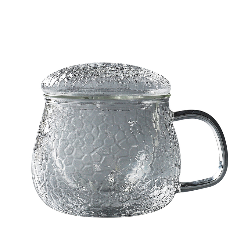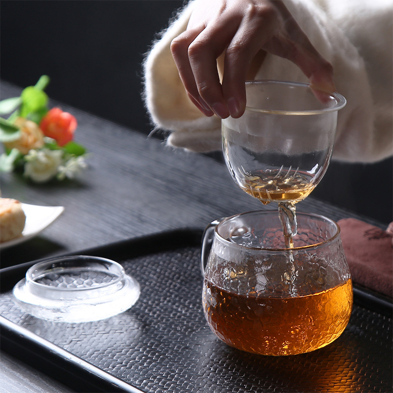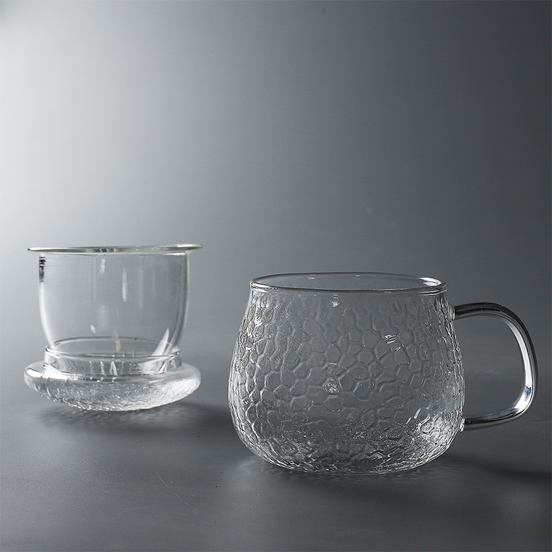 Hammer glass flower tea cup thickened heat-resistant three-piece transparent liner office men's and women's cup tea and water separation household cup