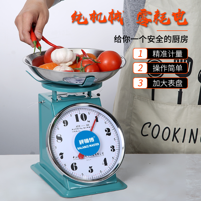 Pan says 20 kg home pointer says debatable scale old plate round spring says 5kg disc 10 retro