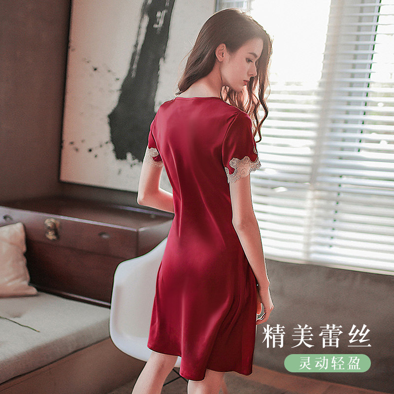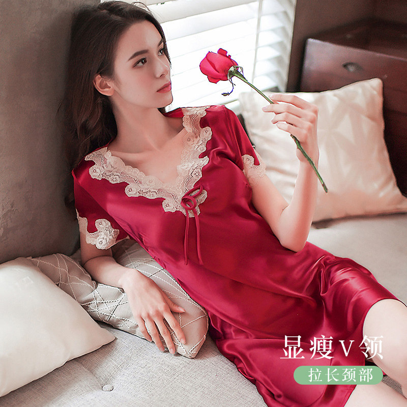 Silk nightdress women's zodiac year 100% mulberry silk pajamas summer short-sleeved red silk pajamas women's large size advanced