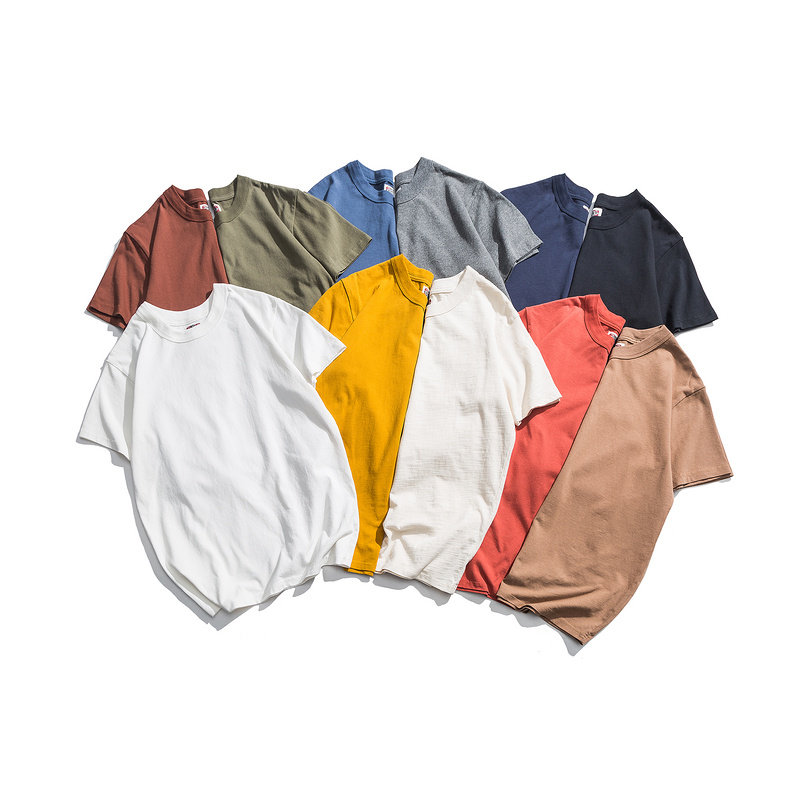 2021 spring and summer vintage heavy cotton T-shirt multi-color wild casual solid color round neck short-sleeved men's and women's T-shirts tide brand