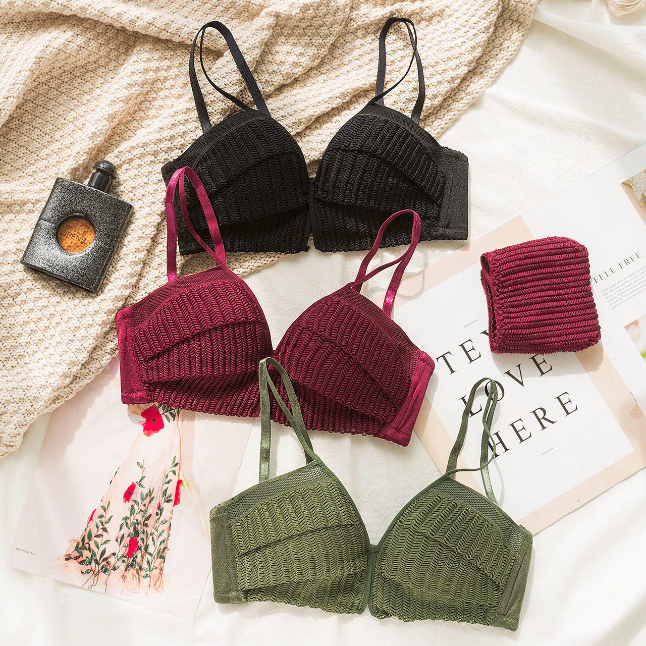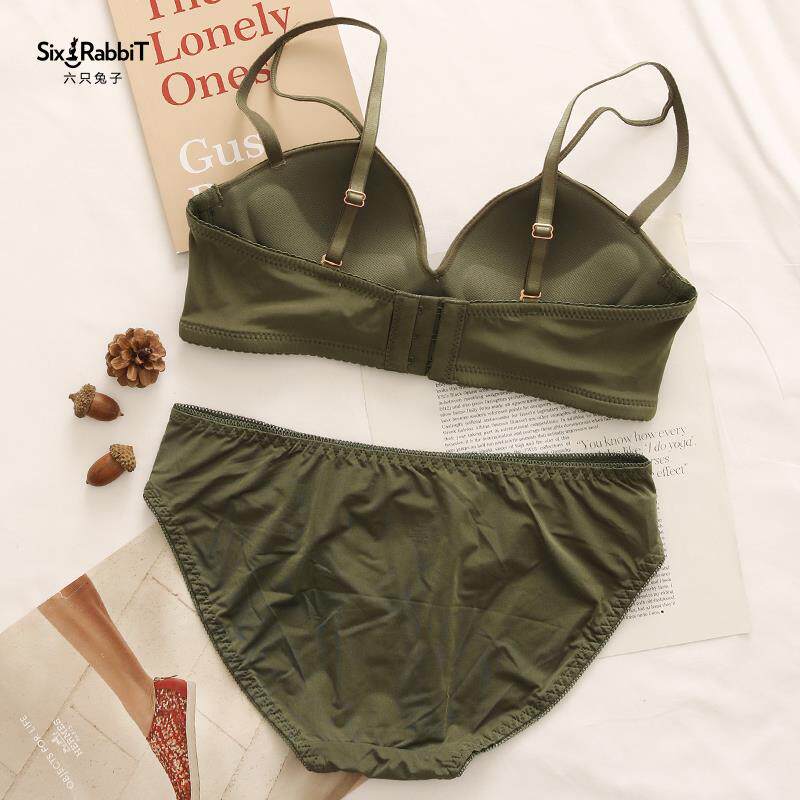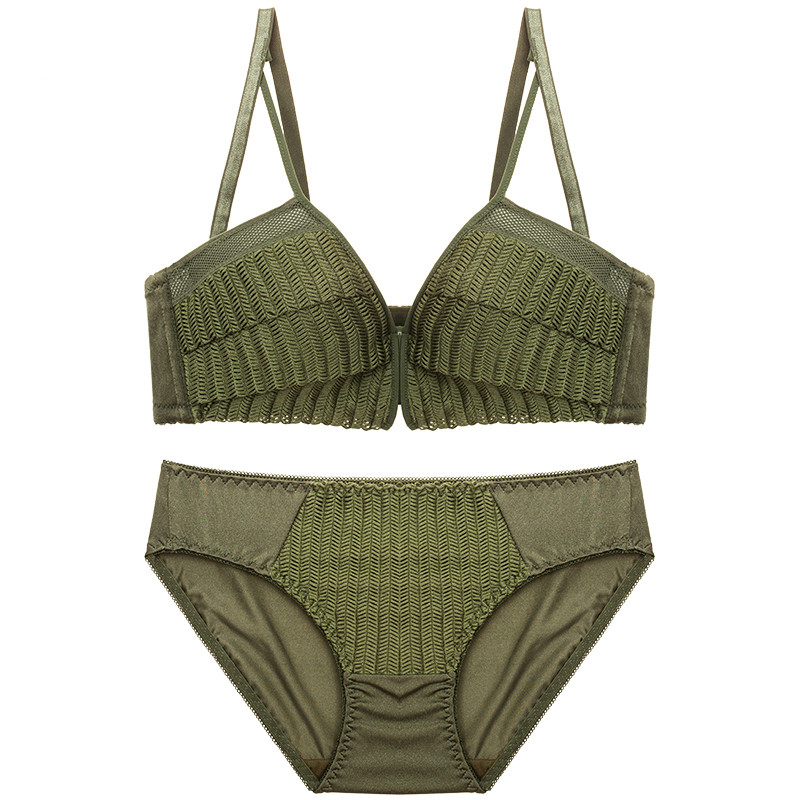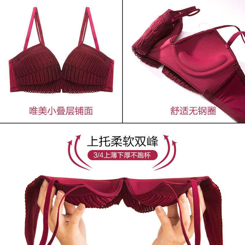 Upper Thin Lower Thick No Steel Ring Underwear Suit Teenage Girl Sexy Lace Poly Woo Bra Closeup Breast Proof Saggy Small Bra