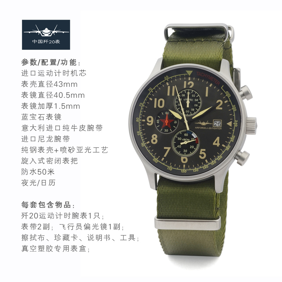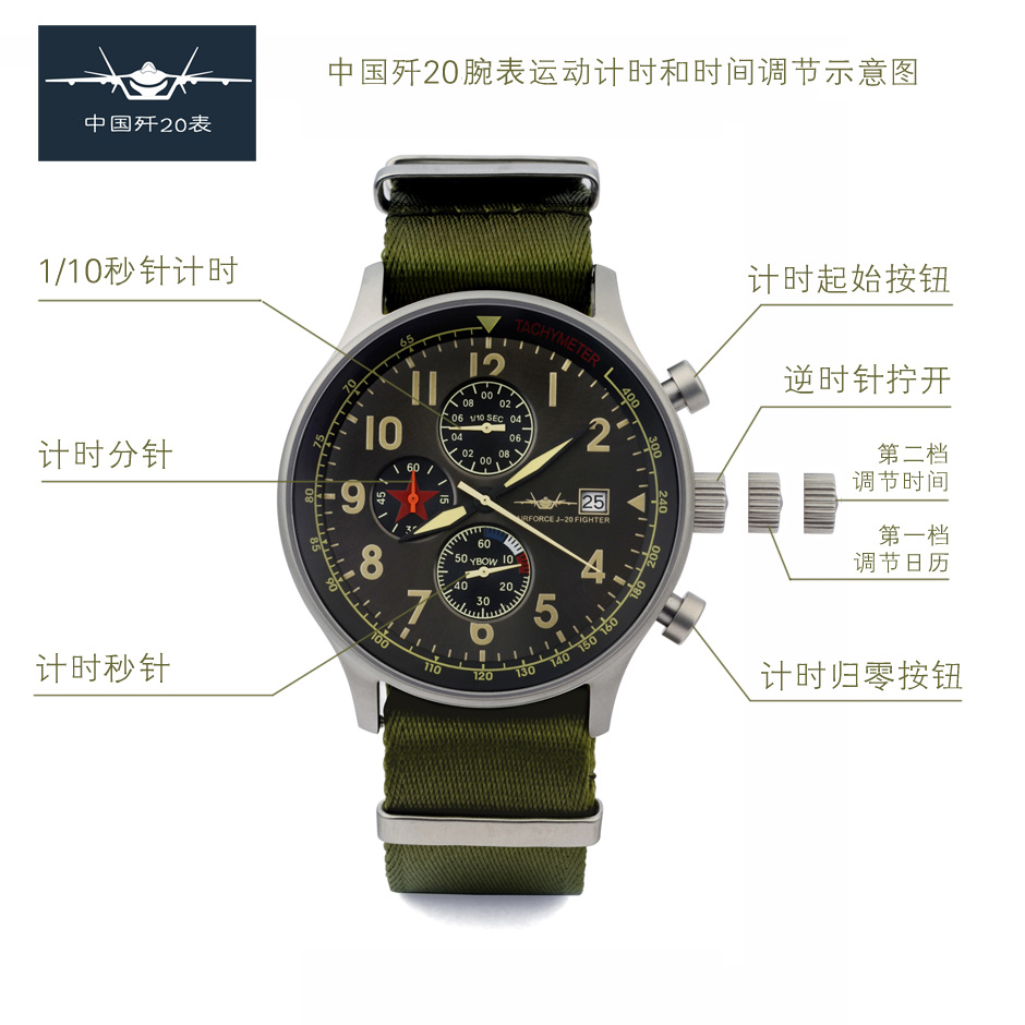 China J-20 watch, J-20 fighter concept watch, sports chronograph watch, outdoor watch