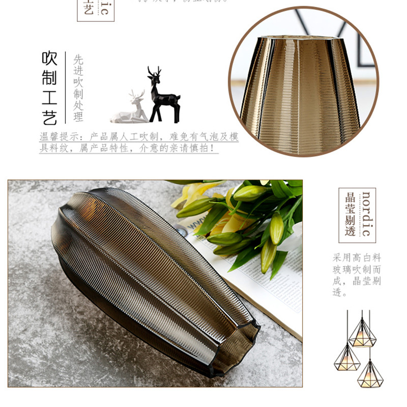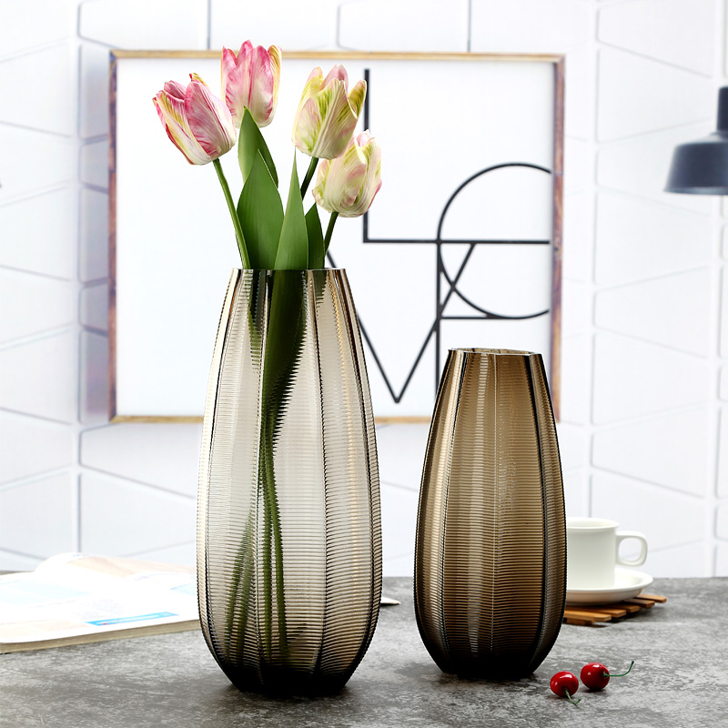 Dancing Orchid Lily Rose Lucky Bamboo Vase Ornament Gray Glass Living Room Countertop Transparent Flower Arrangement Hydroponic Large