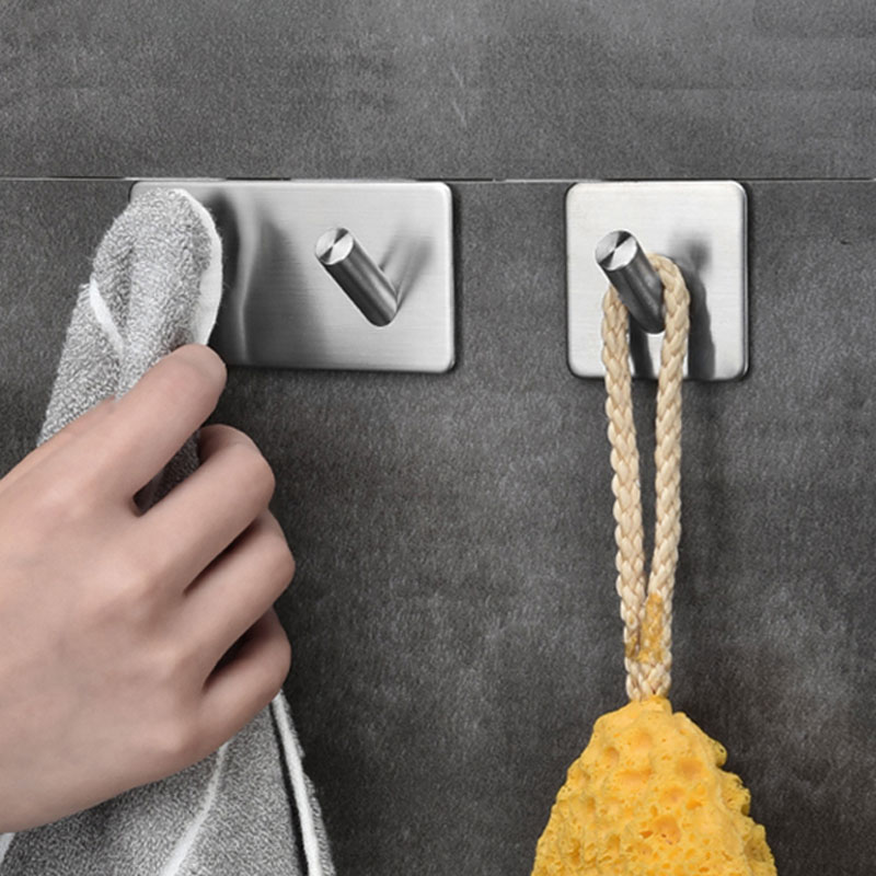 304 stainless steel hook strong adhesive kitchen wall sticky hook powder room bathroom nail-free clothes hook free punch