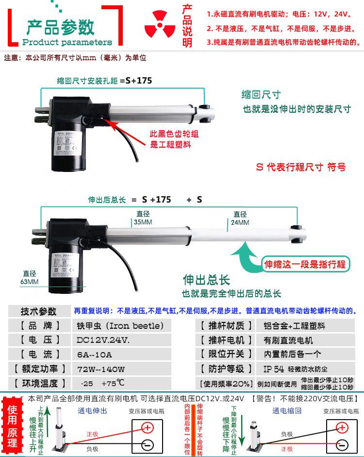Electric push rod Industrial grade 220V12V24V electric cylinder push rod motor telescopic rod Hydraulic device electric lifting rod