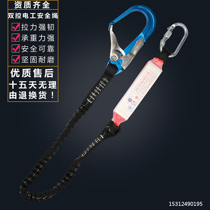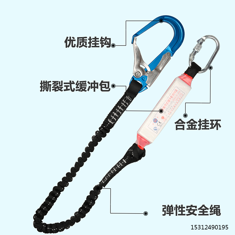Light aluminum alloy large hook connecting rope elastic buffer safety rope high altitude safety belt construction insurance