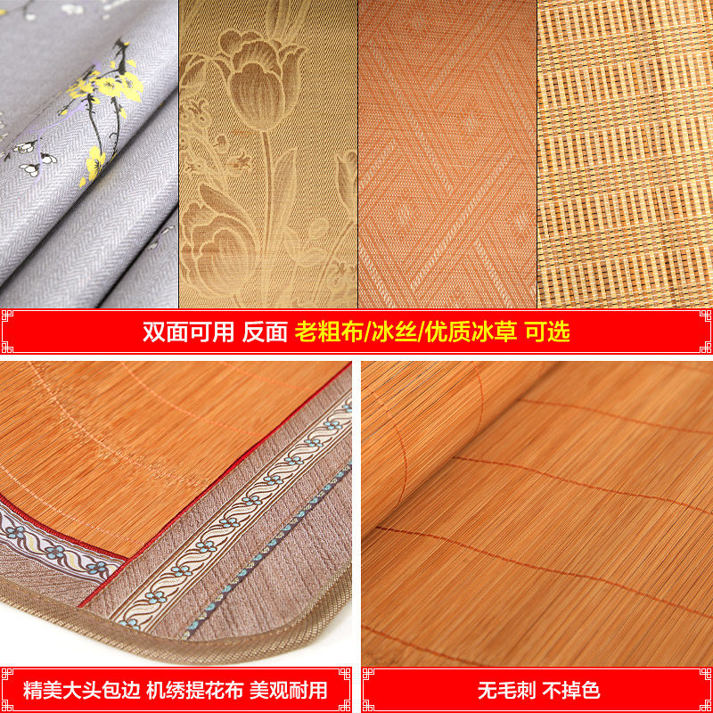 Bamboo mat cool mat 1 8m bed 1 5 m Double folding grass Mat Grass Mat single student Dormitory 1 2 Bifacial Ice Silk Summer
