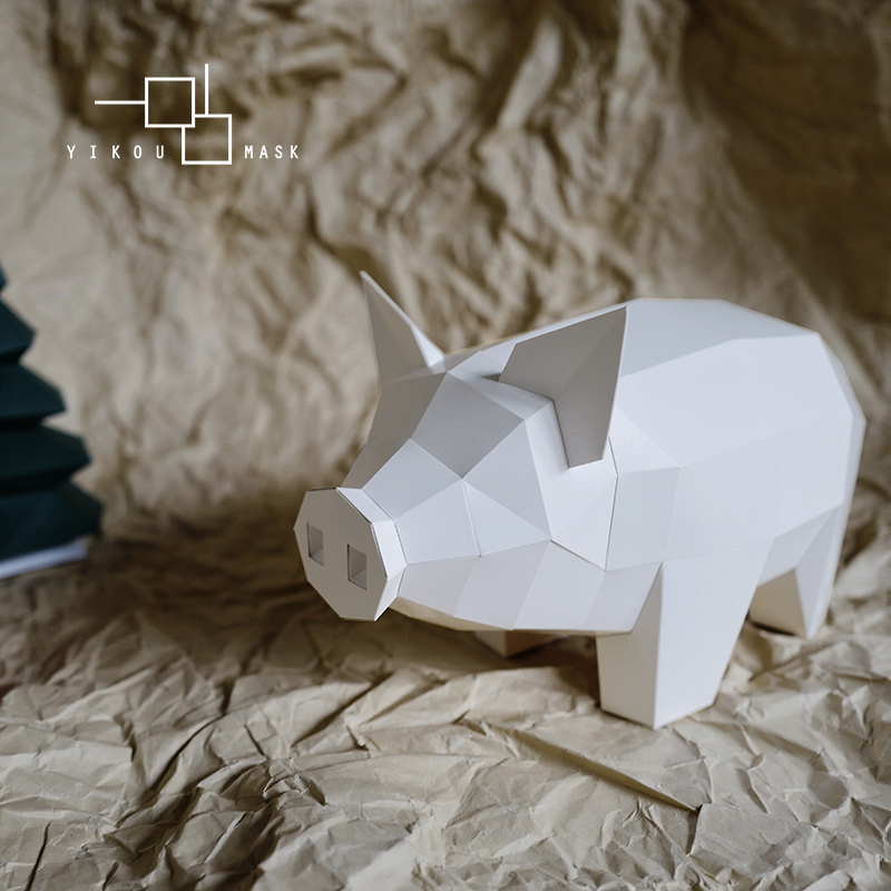 Pig Year gift paper art DIY hand-made three-dimensional geometric animal pig ornaments Cute decorative mascot creative Nordic I