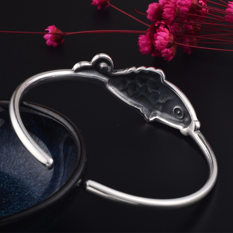 S999 pure silver retro gin carp bracelet such as fish to send girlfriend nectar hand ring gift to keep the lettering