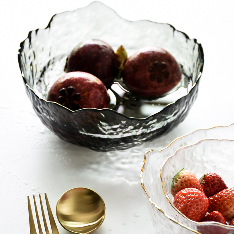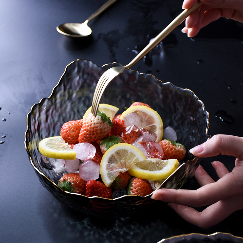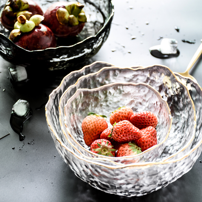 Nordic Glacier glass large bowl Large capacity gold fruit salad bowl Tea wash dessert small bowl soup bowl