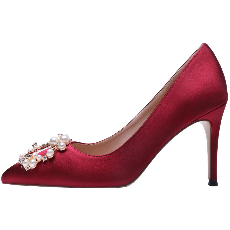 2019 spring new bridesmaids wedding shoes women sexy 100 hitch drill tip fine heel single shoe woman red heels