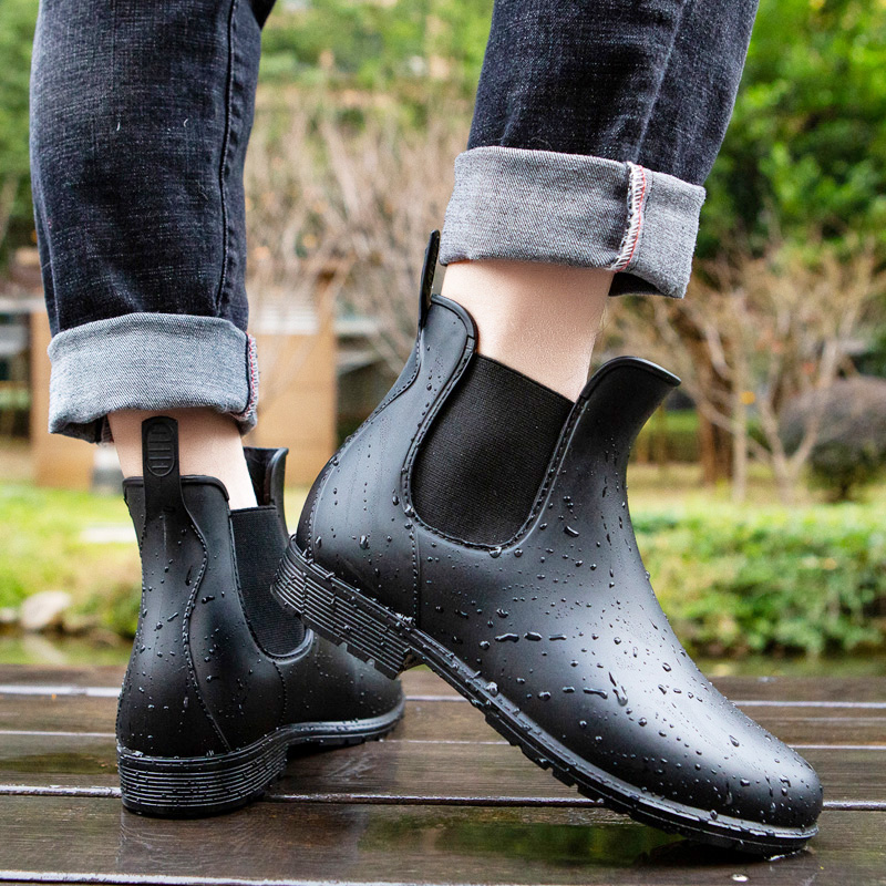 Rain Protection Shoes Men's Fashion Low Anti Slip Water Shoes Rain Boots Short Silo Rubber Shoes Chelsea Waterproof Shoes Men's Spring Summer Cover Shoes Men