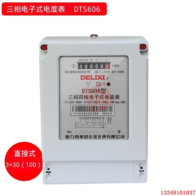 Delixi DTS606 three-phase electronic meter 607-3*3 (6) A 40A 80 100A three-phase electronic meter