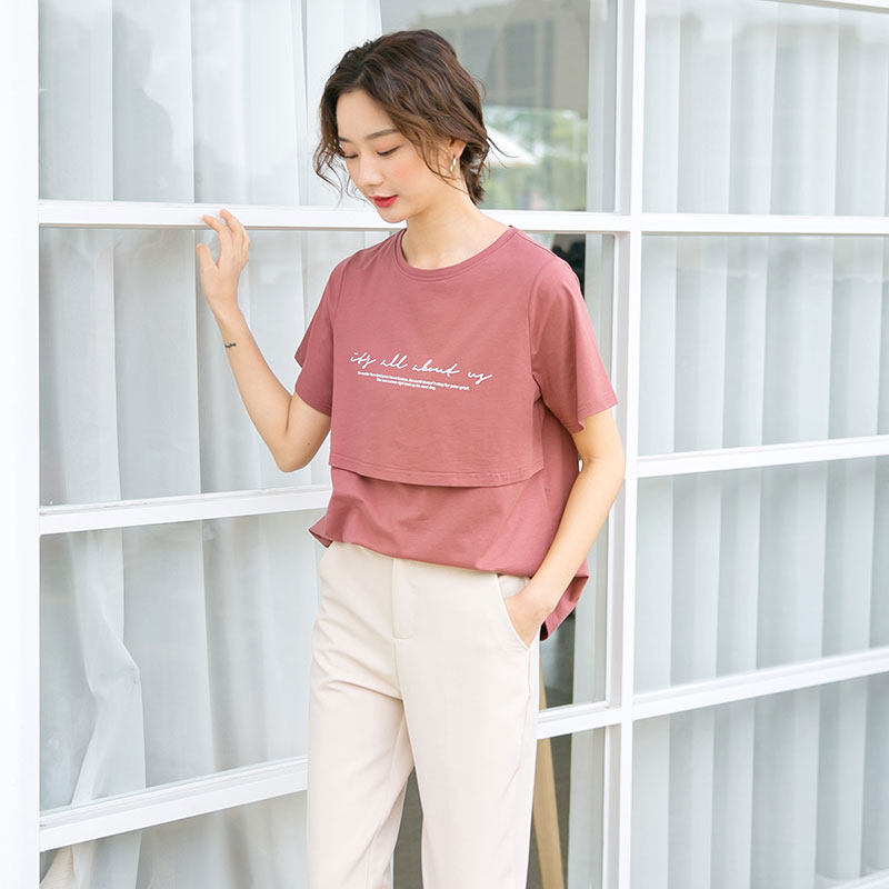 Breast-feeding clothes out summer fashion moon breast-feeding clothes wear hot mother short-sleeved pregnant woman T-shirt breast-feeding coat