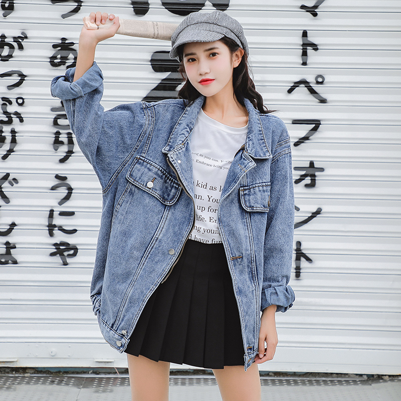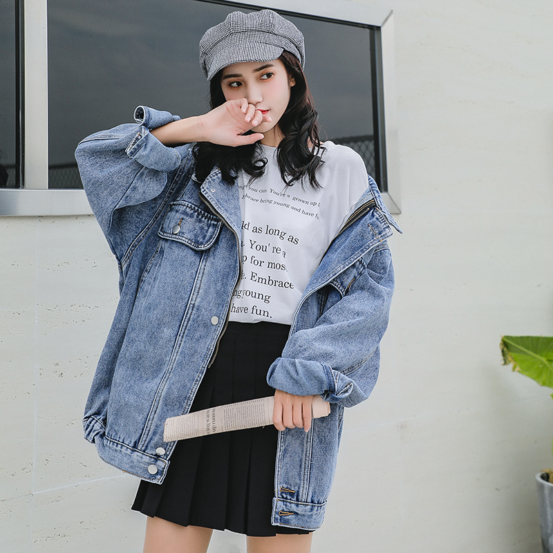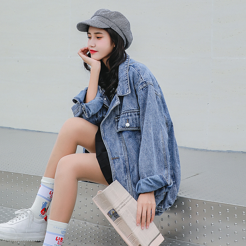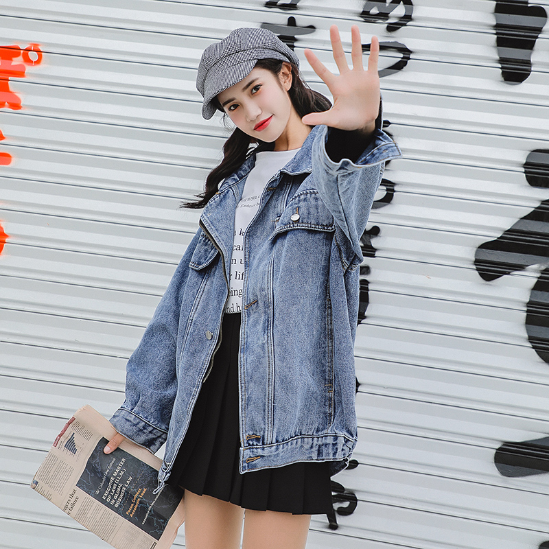 Denim jacket women's loose 2022 spring new Korean version long-sleeved bf style medium and long version couple denim clothes trend