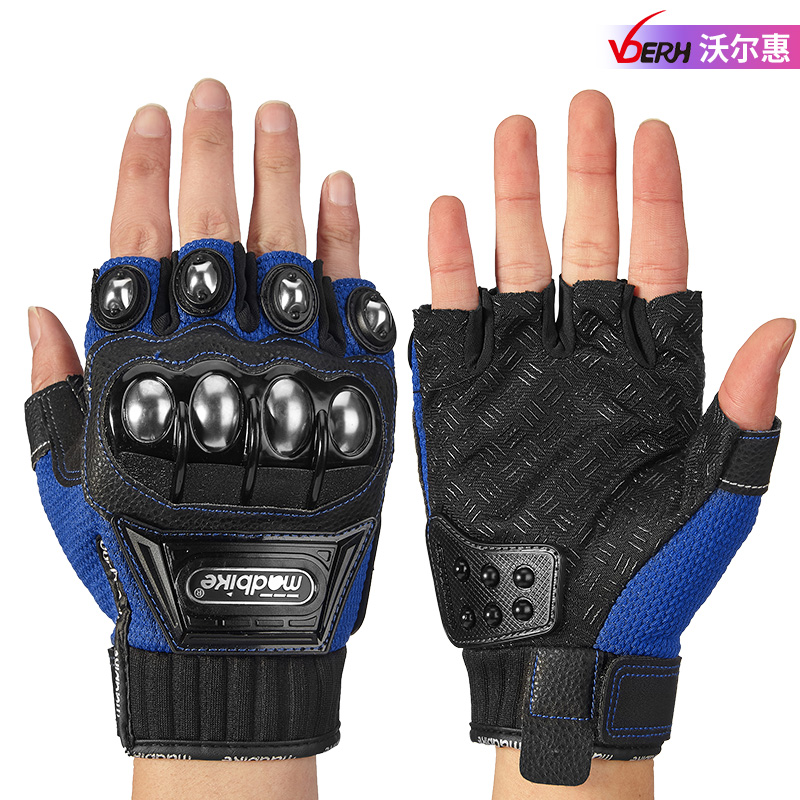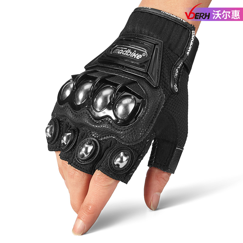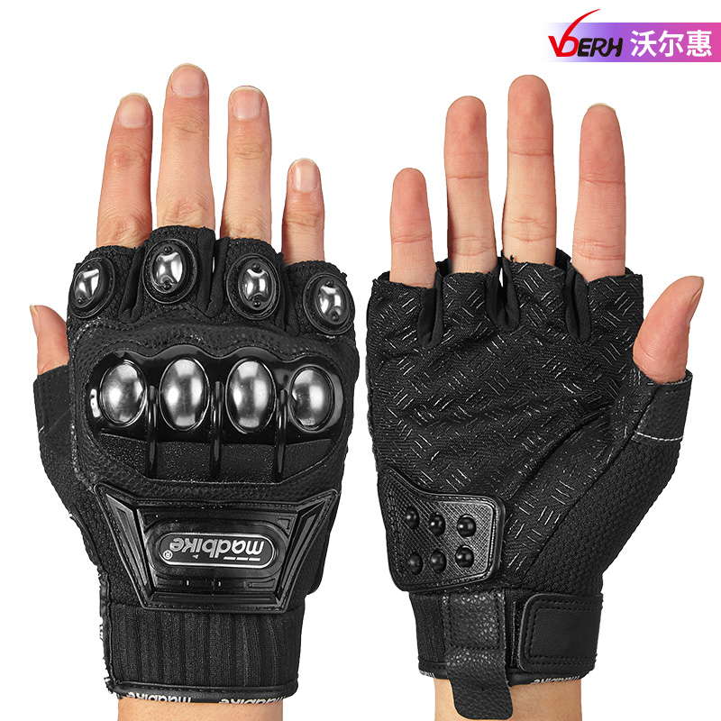 MADDBKE Locomotive Riding Gloves Summer Stainless Steel Anti-Motocross Rider Racing Locomotive Half Finger Half