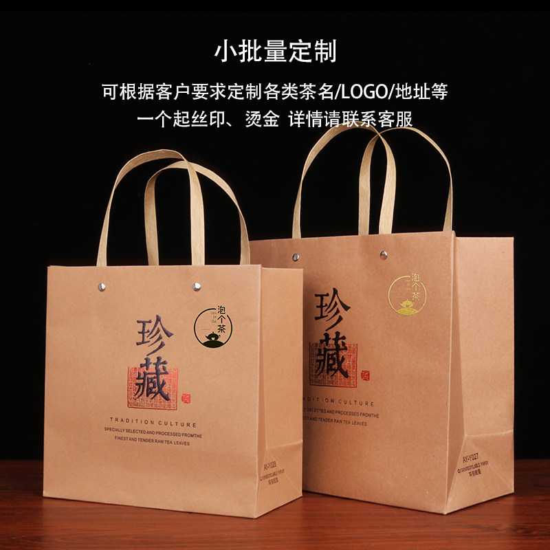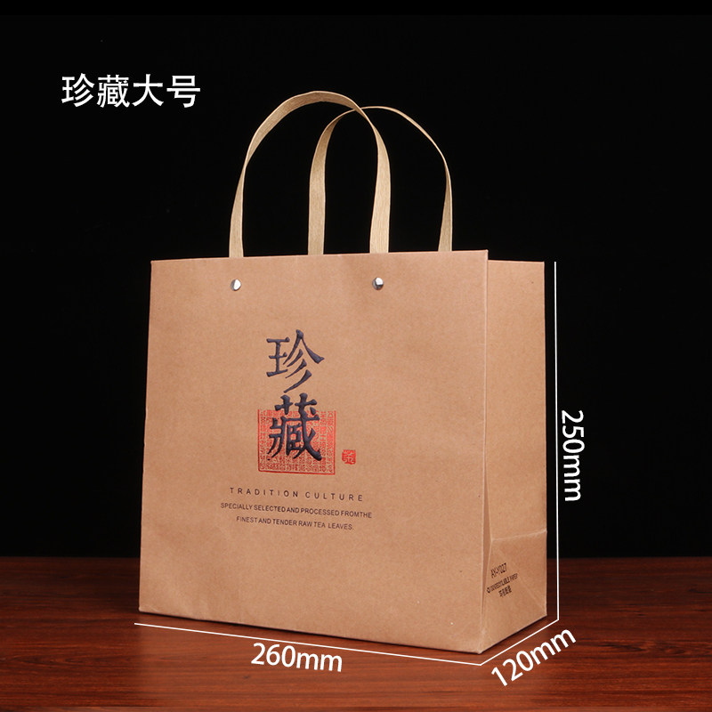 Tea packaging handbag thickened kraft paper rivets simple retro high-end handbag universal printing custom logo