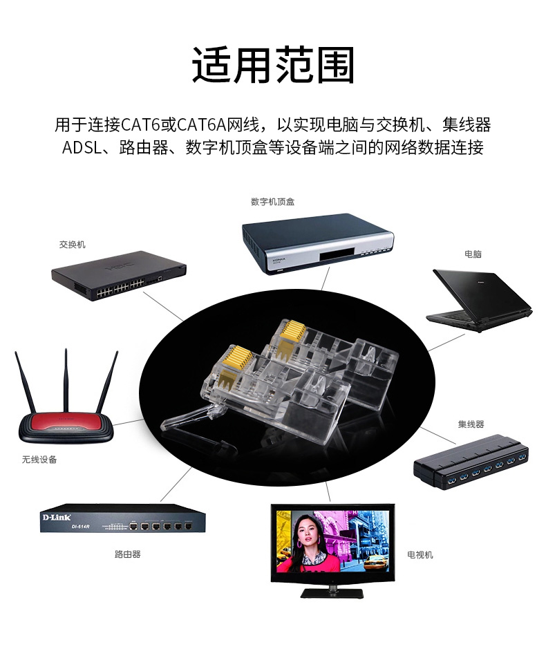 Super Six Class Crystal Head one thousand trillion Internet Crystal Head CAT6 Non-shielded Telecommunications Engineering Class 8P8C gold plated 100 grain