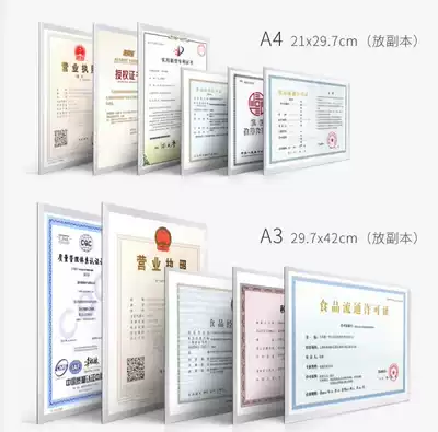 New version of industrial and commercial business license frame three-in-one food hygiene license frame wall A3 original A4 certificate frame