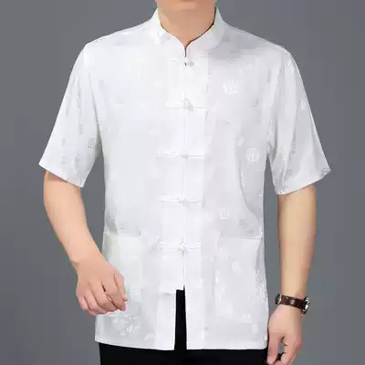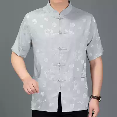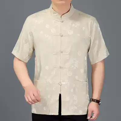 Chinese style summer men's mulberry silk short sleeve Tang suit jacket Chinese collar half sleeve shirt old man clothes