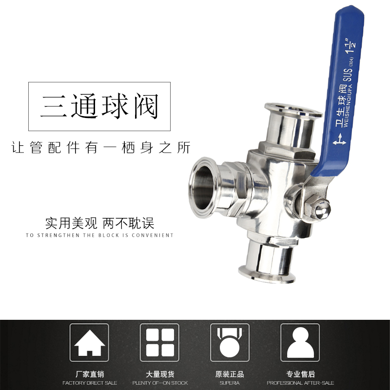 Quick-loading three-way ball valve 304 stainless steel sanitary manual clamp type T-type L-type chuck quick-connect ball valve 38 51