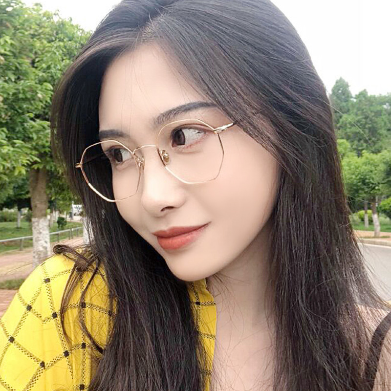 Pure titanium myopia glasses women have a degree retro Korean version of the tide polygonal men's glasses frame net red model large round face can be equipped