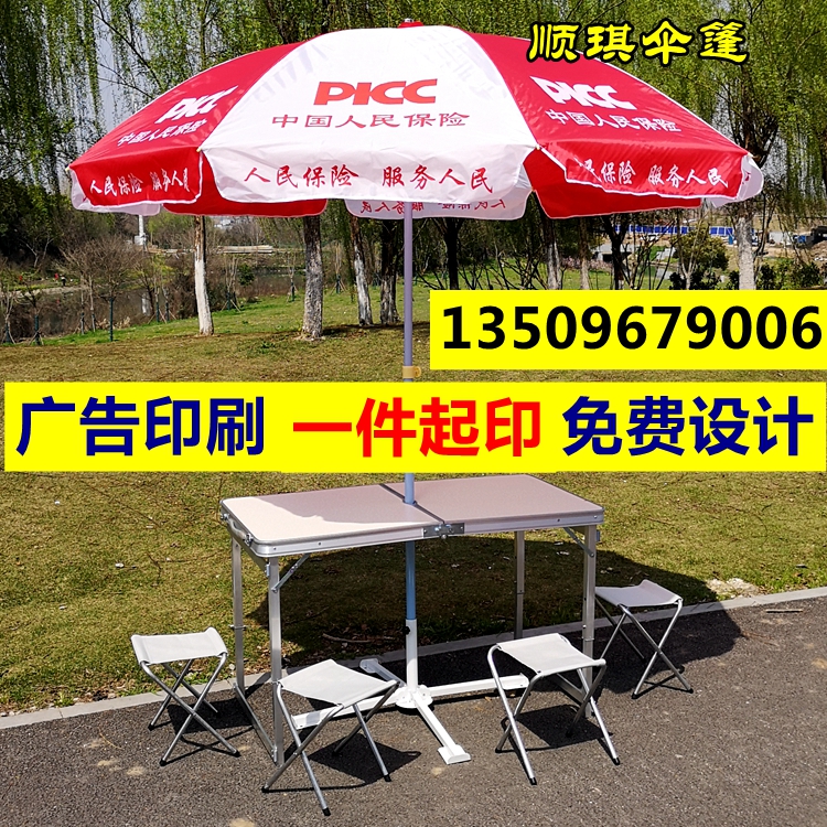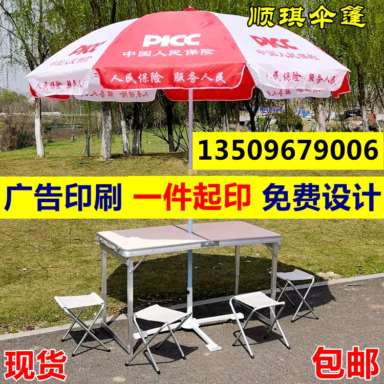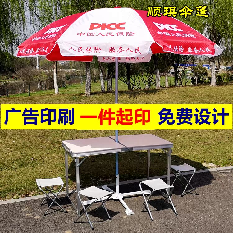 Customize the picc Chinese insured property insurance advertising umbrella pendulum stall sunshade with table and chairs combined to push publicity sunshades