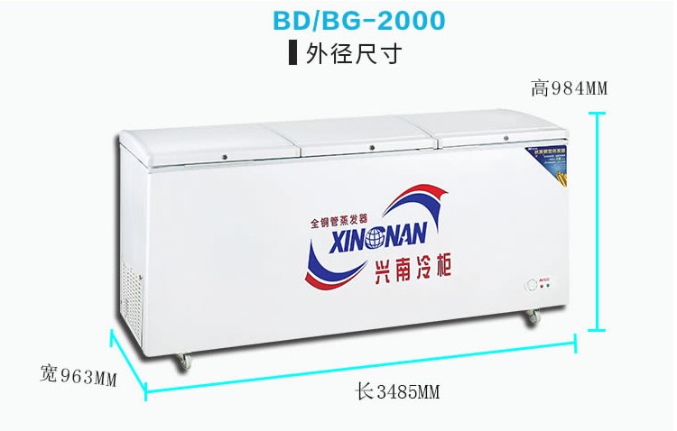 Xingnan copper tube horizontal freezing freezer large capacity freezer double compressor freezing refrigerator BDBG-1500 2000