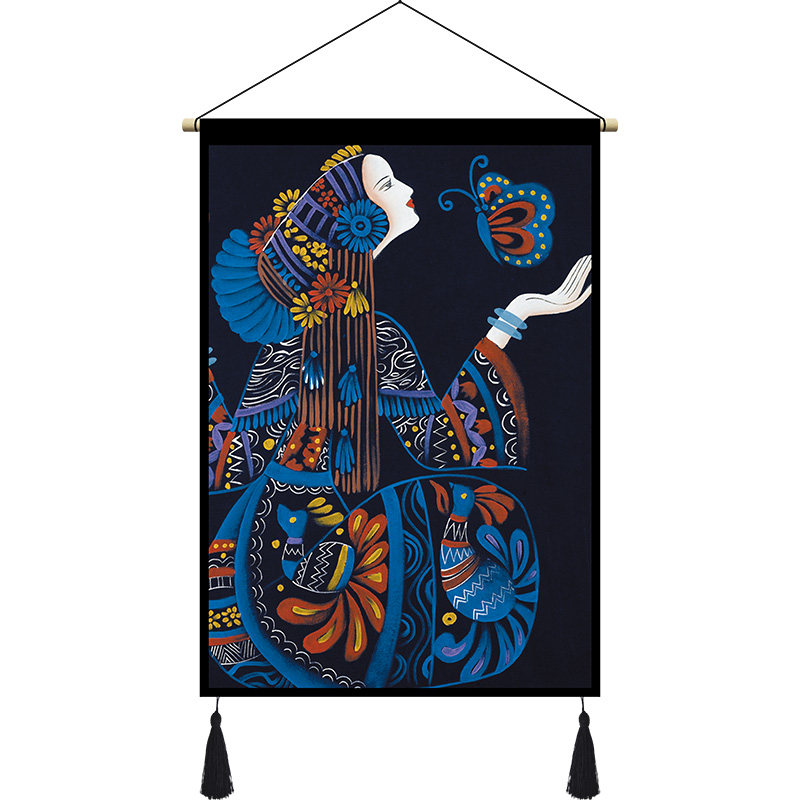 Folk Hangbu Art Decoration Hung Painting National Wind Decoration Character Hotel Guest House Hanging Cloth Wall Blanket Bedroom Living Room Background Cloth