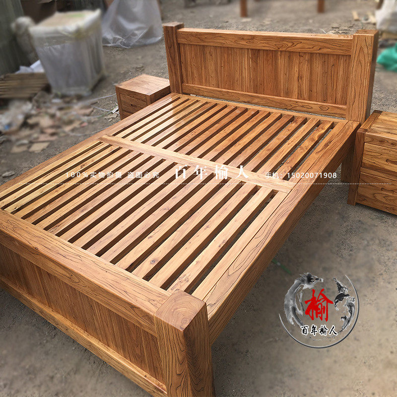 Old Elm Wood Bed 1 8 m Double Bed Bedroom Furniture Old Elm Wood Modern Brief Chinese Total Solid Wood High-end Wedding Bed-Taobao