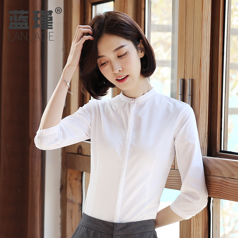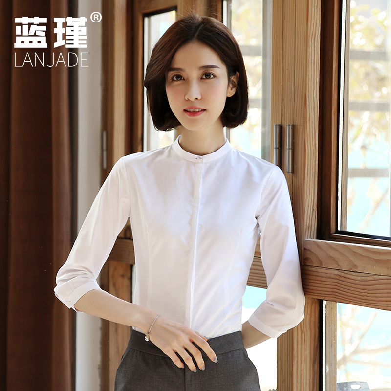 White (vertical collar pearl buckle) short sleeve (vertical collar pearl buckle) white (vertical collar conventional) white (small square collar) white (generous collar) white (V collar) blue (vertical collar)