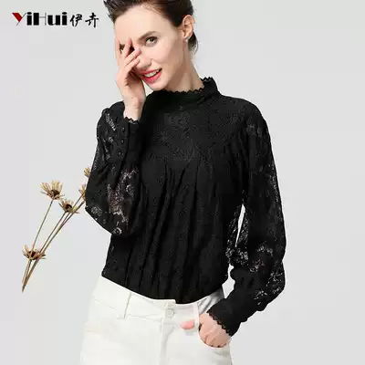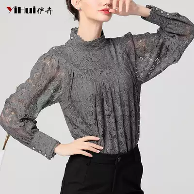 Spring 2021 new lace shirt bottoming shirt women's long-sleeved top hollow long-sleeved shirt gray thin cover belly