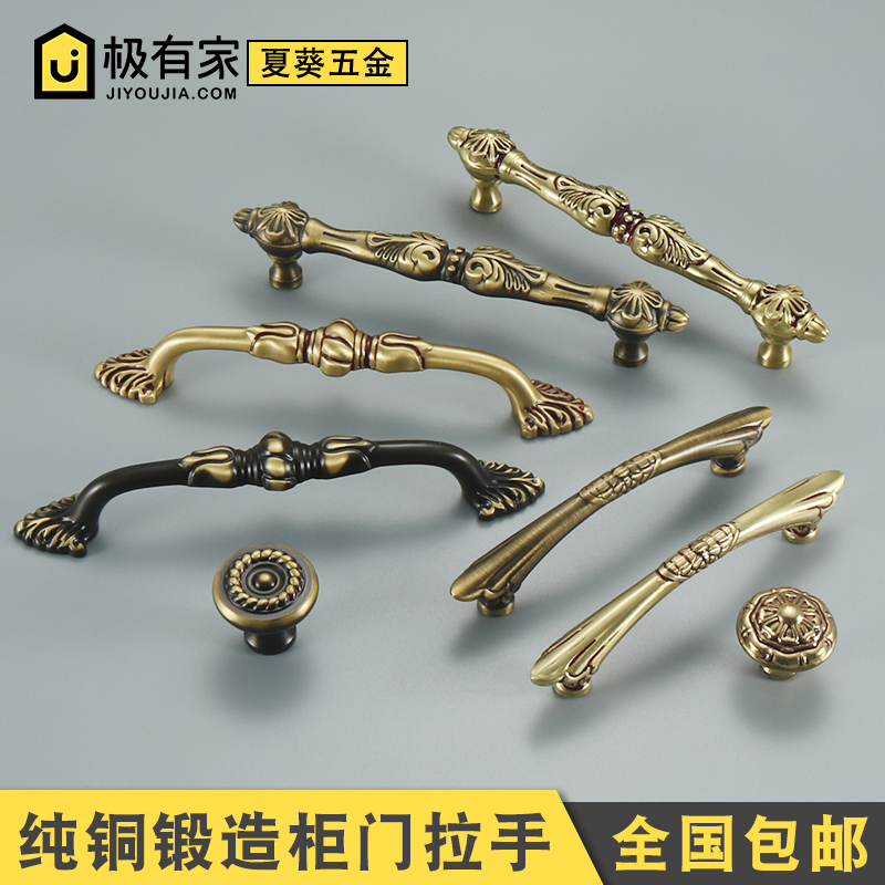 Pure copper cabinet door handle new Chinese drawer cabinet shoe cabinet American closet door classical antique copper handle